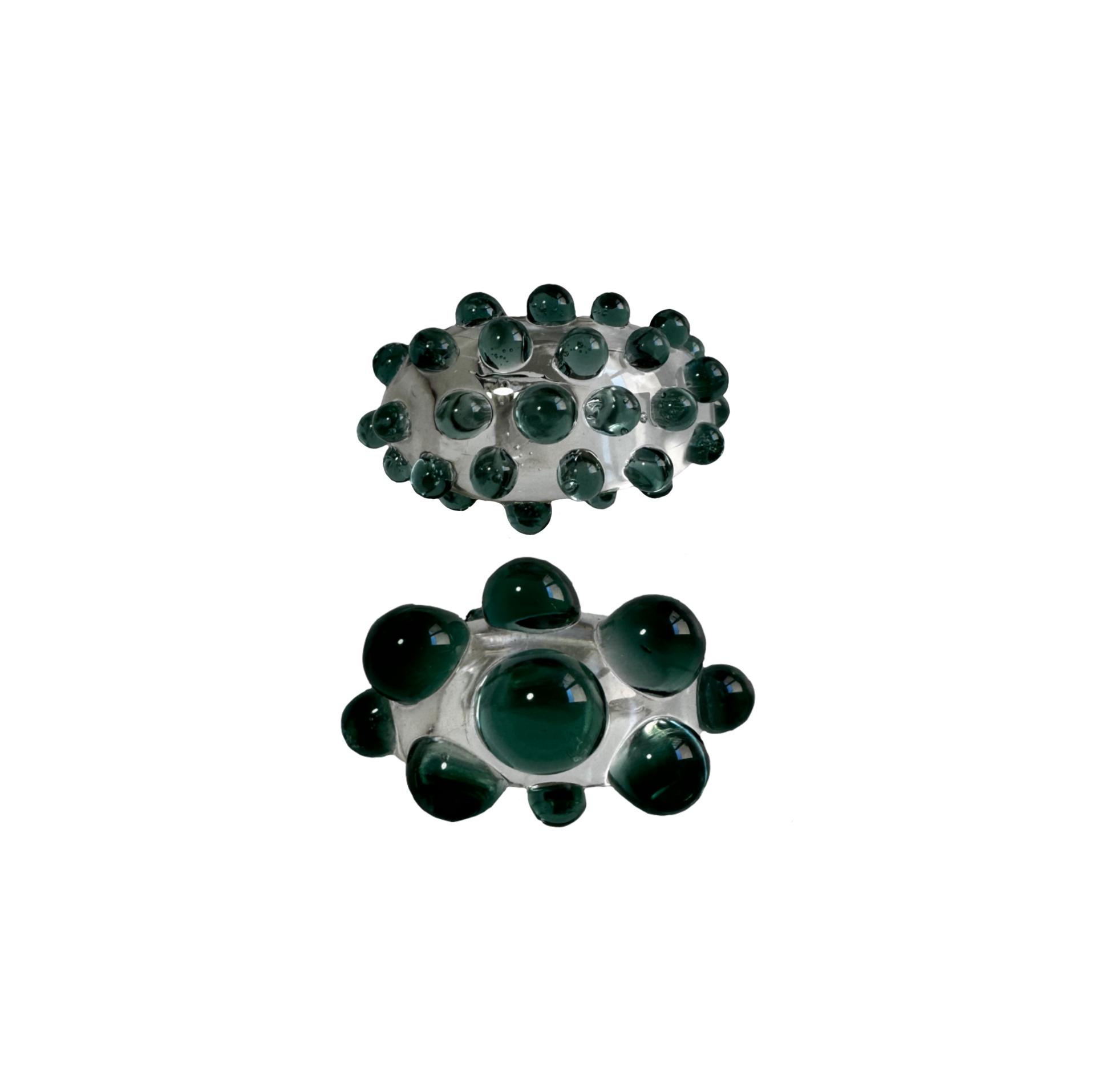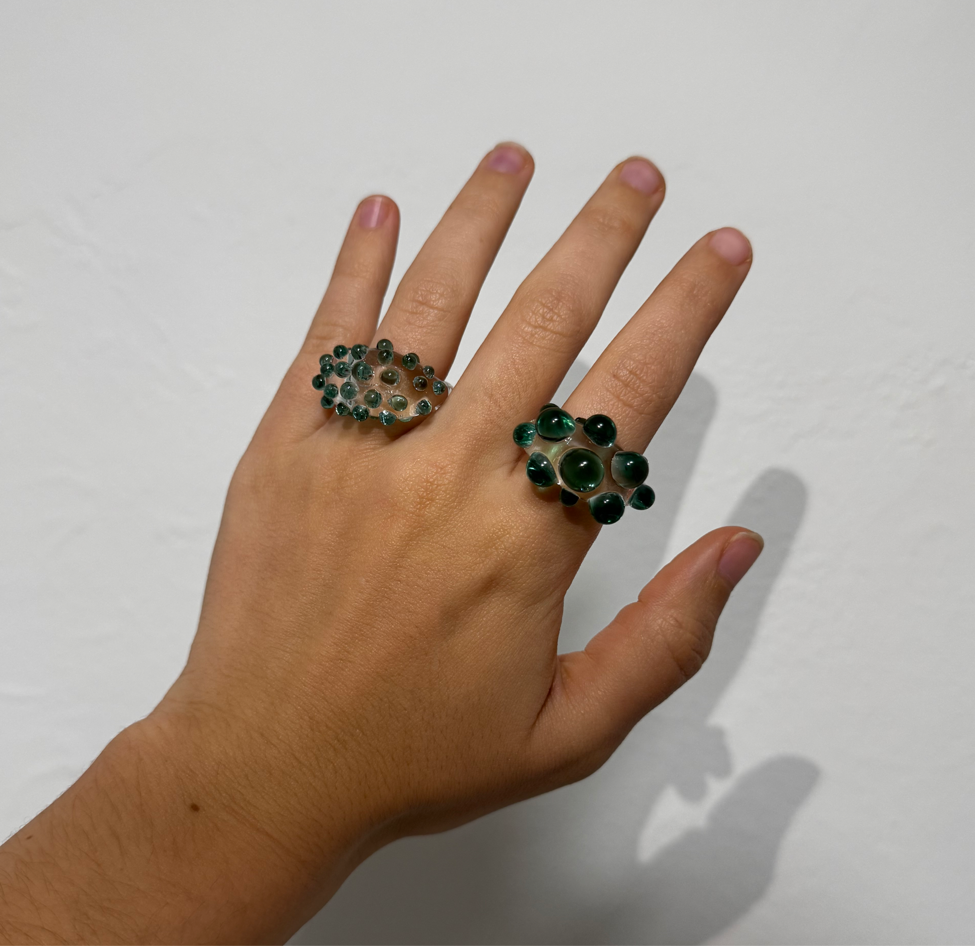 Anillo de vidrio borosilicato con base en transparente y detalles en turquesa.