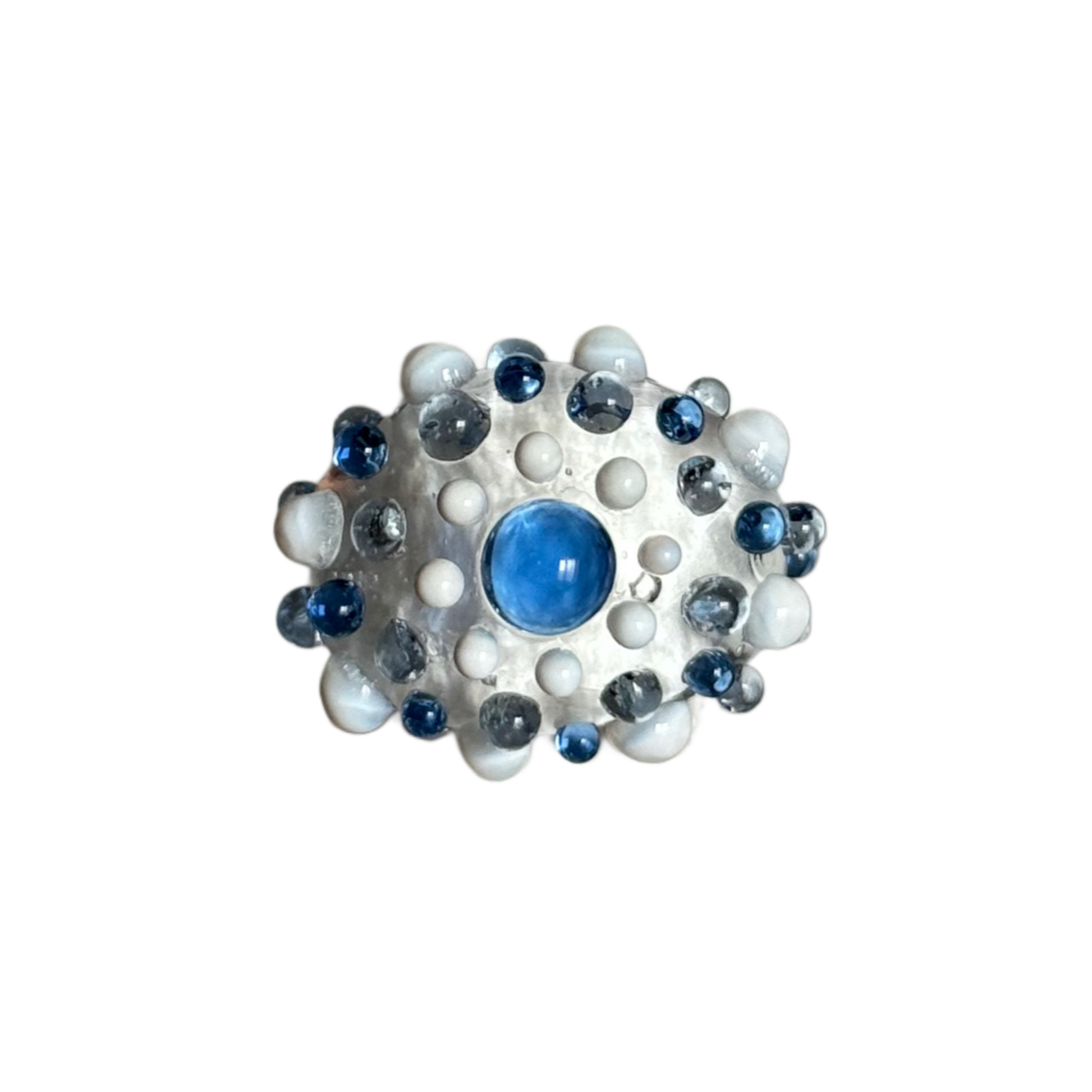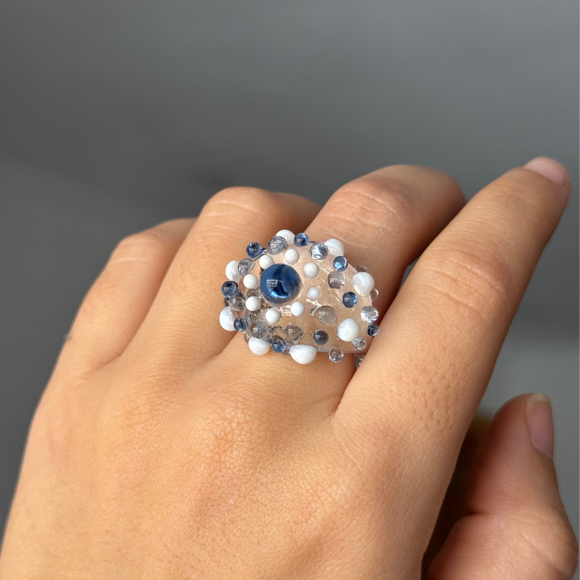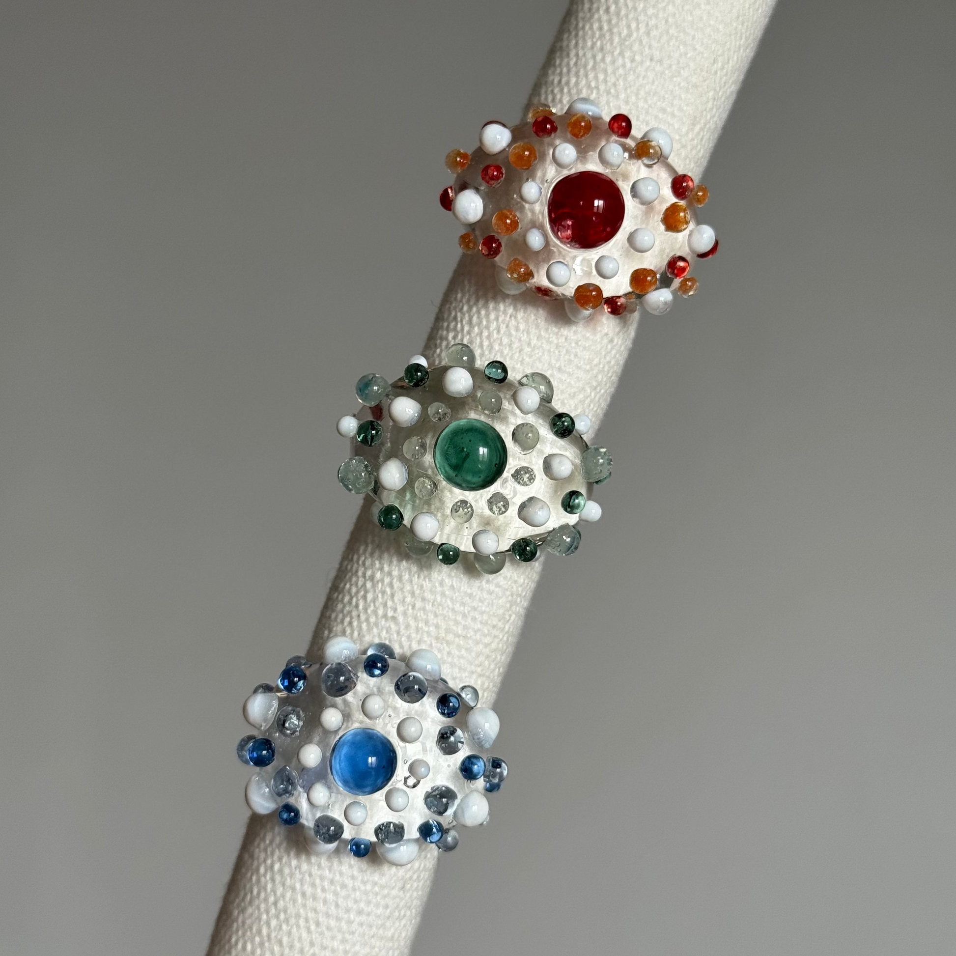 Anillo de vidrio borosilicato transparentes con detalles en diferentes gamas de colores. Hecho a mano y a medida.